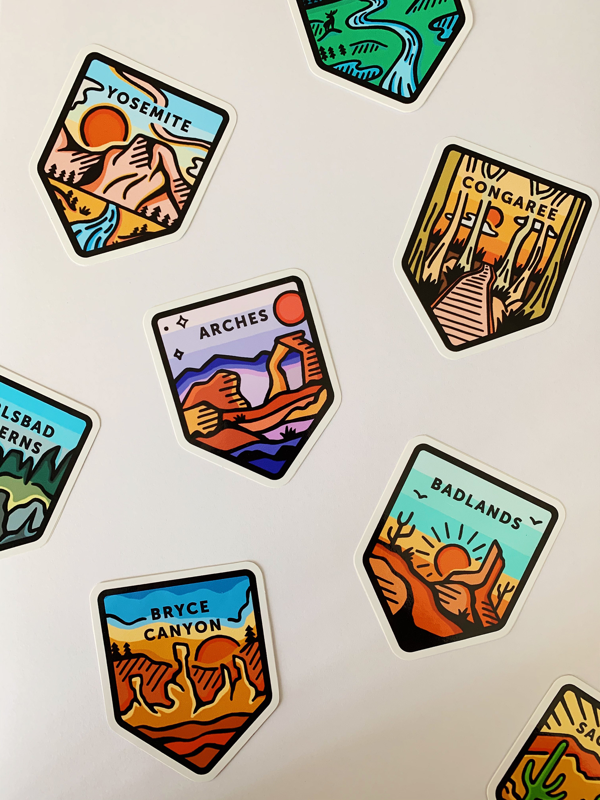 Below are some of stickers available on print/sale at the moment. Some national parks are still work in progress, working to be colored! :-)
